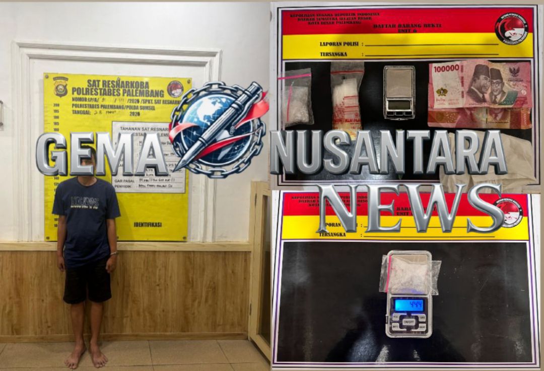 Tersangka ini diduga kuat berperan sebagai pengedar narkotika jenis sabu-sabu di wilayah hukum Polrestabes Palembang.
